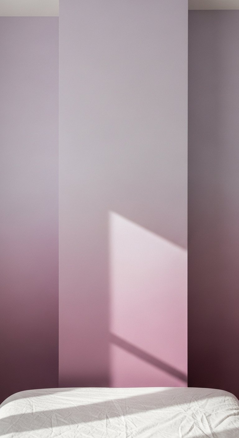 A pastel ombré makes ceilings feel taller and gives a fairytale backdrop. I used peel-and-stick panels in lilac to plum and kept furniture simple. Add pastel purple peel-and-stick wallpaper for an easy install. This creates a soft focal point that reads intentional. Mistake to avoid: harsh trim lines. Blend edges with a narrow paint band or a thin crown molding to make the gradient feel seamless.