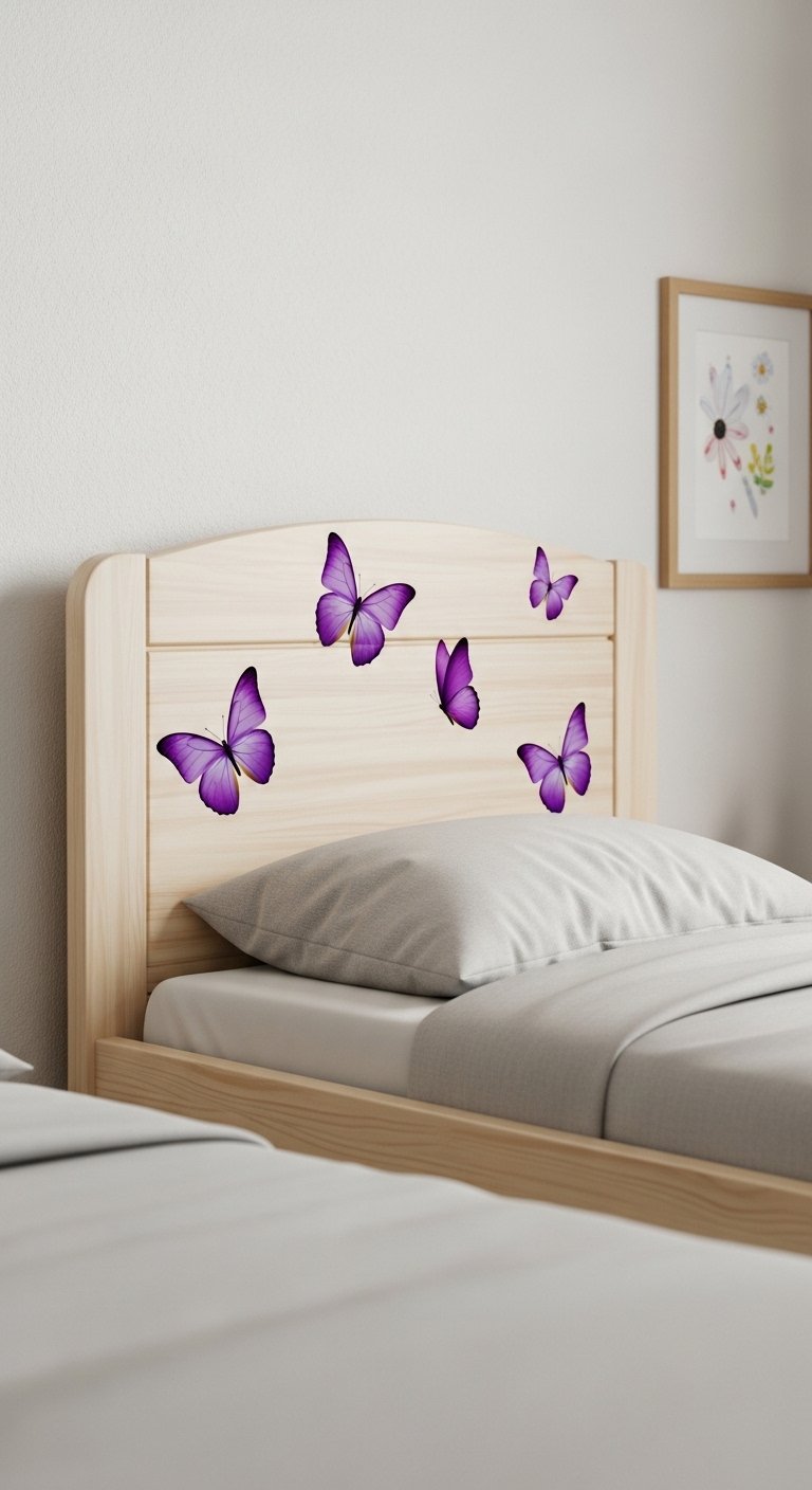 Peel-and-stick decals let you try patterns without commitment. I used purple butterfly wall decals above a twin bed. They’re cheap and swap out by age or mood. Mistake to avoid: covering large expanses in one pattern. Keep decals to an accent area so the room still feels balanced and restful.