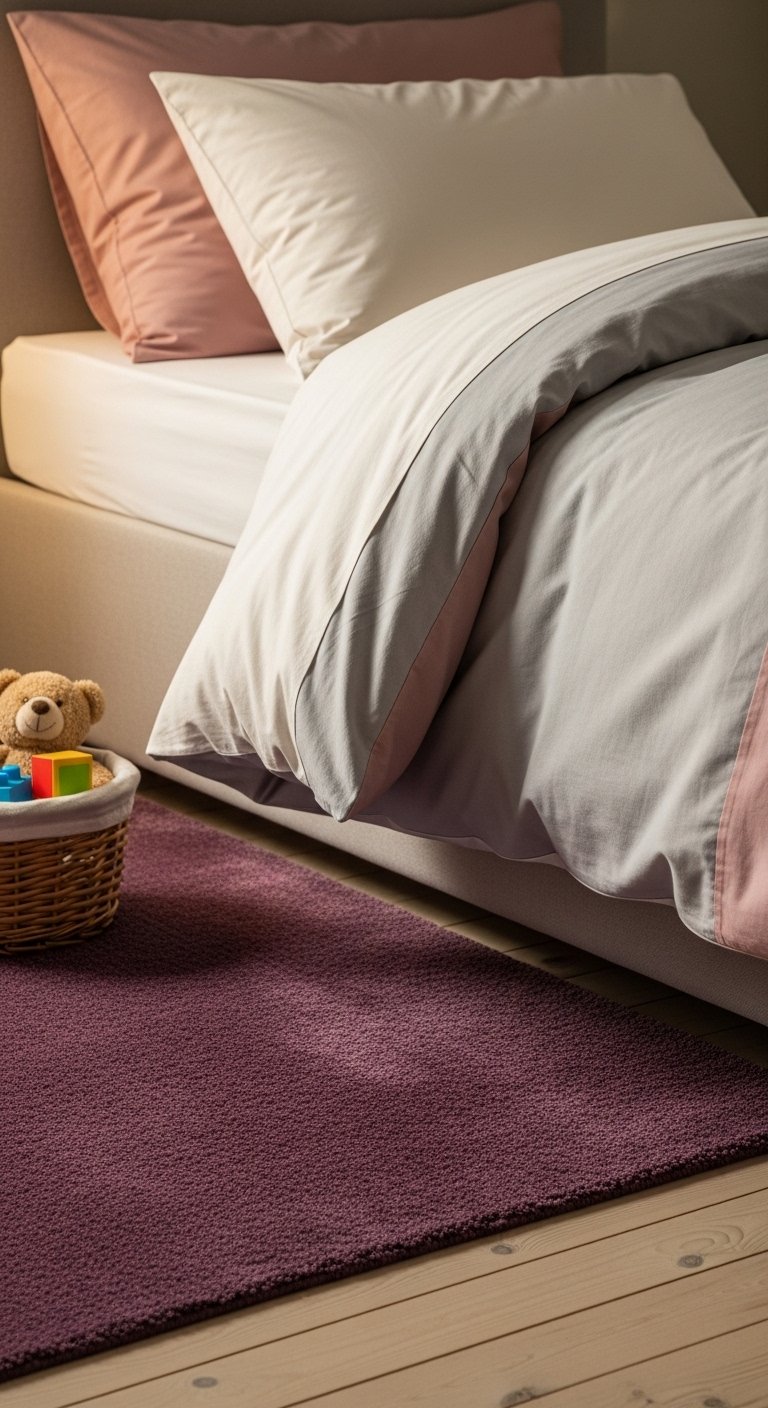 I added a plum area rug 5×7 to anchor the bed and make the floor feel soft underfoot. It’s great for chilly mornings and adds depth. Mistake to avoid: choosing a rug too small—aim for at least 18 inches beyond the bed edge so it reads intentional.