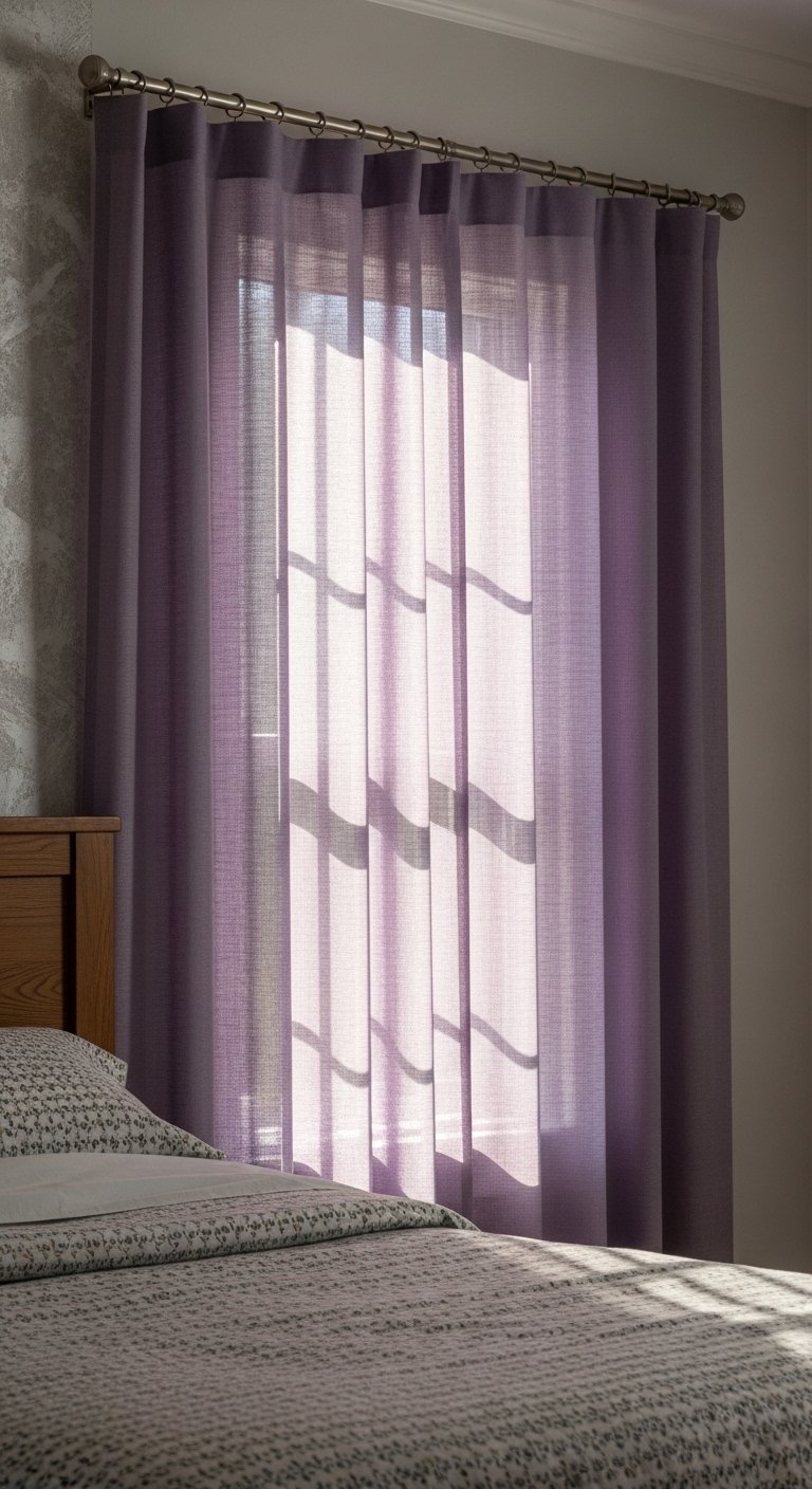 I swapped blackout panels for linen-blend lavender curtains to create a soft, filtered light. Lavender linen blend curtains 84-inch made the room feel airier. Mistake to avoid: hanging curtains too low—mount close to the ceiling to add perceived height and keep proportions right.