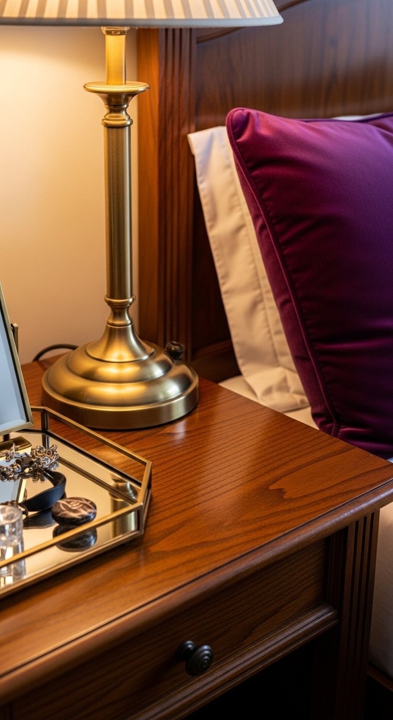 I paired brass lamps and picture frames with plum textiles to balance warmth and depth. Mixed metal picture frames make mixing metals easy. Mistake to avoid: using too many different finishes—pick two main metals and repeat them for cohesion.