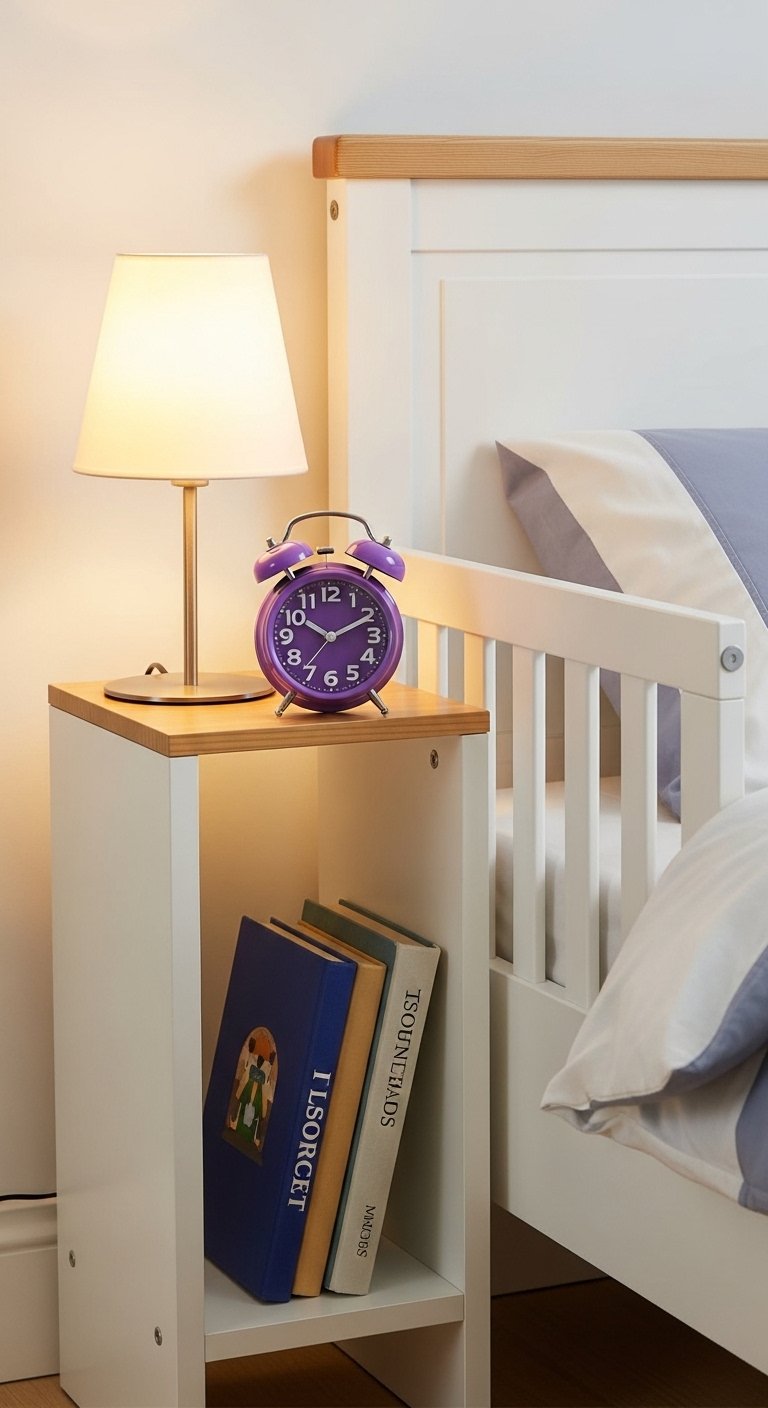 For tight rooms, a wall-mounted bedside shelf frees floor space. I paired it with a low-watt lamp and a purple alarm clock. A compact wall shelf keeps essentials handy. Mistake to avoid: bulky lamps—choose low-profile lighting so the shelf doesn’t feel overwhelmed.