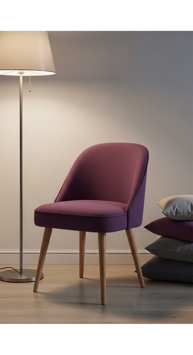 I found a compact plum accent chair at a local store (Target had similar pieces) and it instantly claimed a corner for reading. Pair with a side table and purple throw blanket. Mistake to avoid: choosing an oversized chair—scale down for small rooms to keep flow.