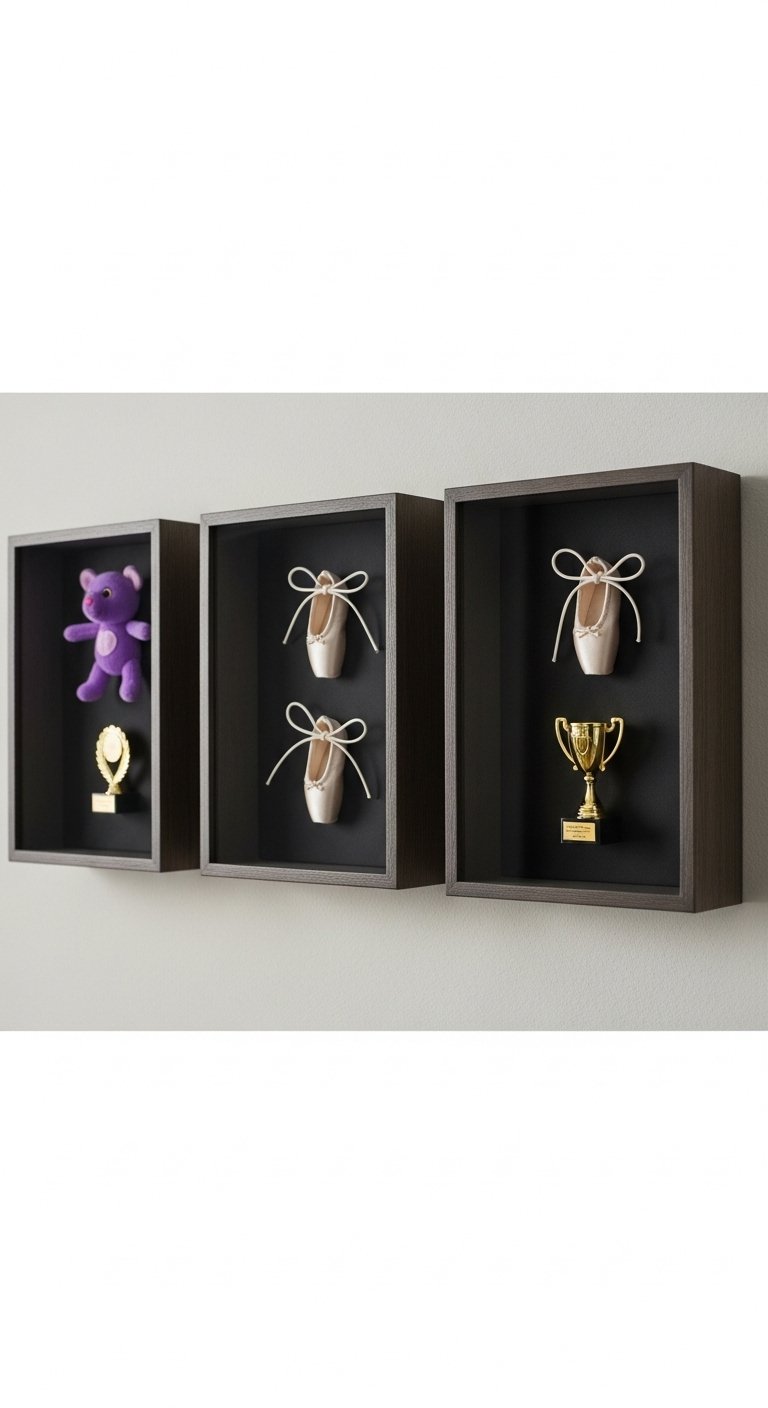 I used shadow boxes to display treasured toys and keepsakes. This keeps shelves tidy and turns toys into decor. Try shadow box frames. Mistake to avoid: overcrowding boxes—one or two items per box reads thoughtful rather than cluttered.